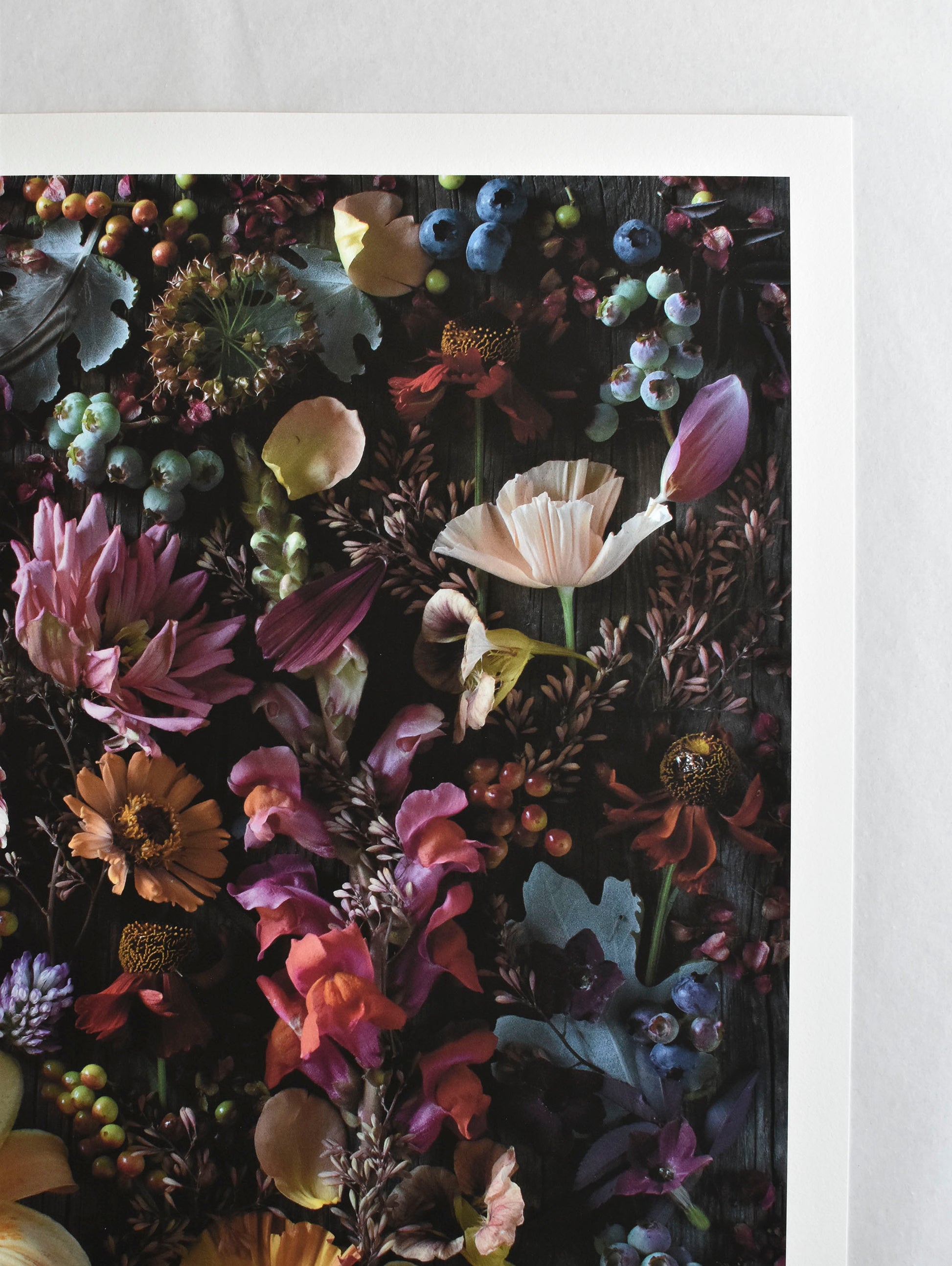 A friend if mine has a saying that "more is more", and for this image I embraced that ethos whole-heartedly! Determined to squeeze in a little bit of everything from the gardens, this image captures the high energy and vibrancy of those sweltering summer days. Scented lilies, the first deliciously ripe blueberries, heat loving annuals and the first crispy seed heads transport us straight back to midsummer whatever season we find ourselves in.