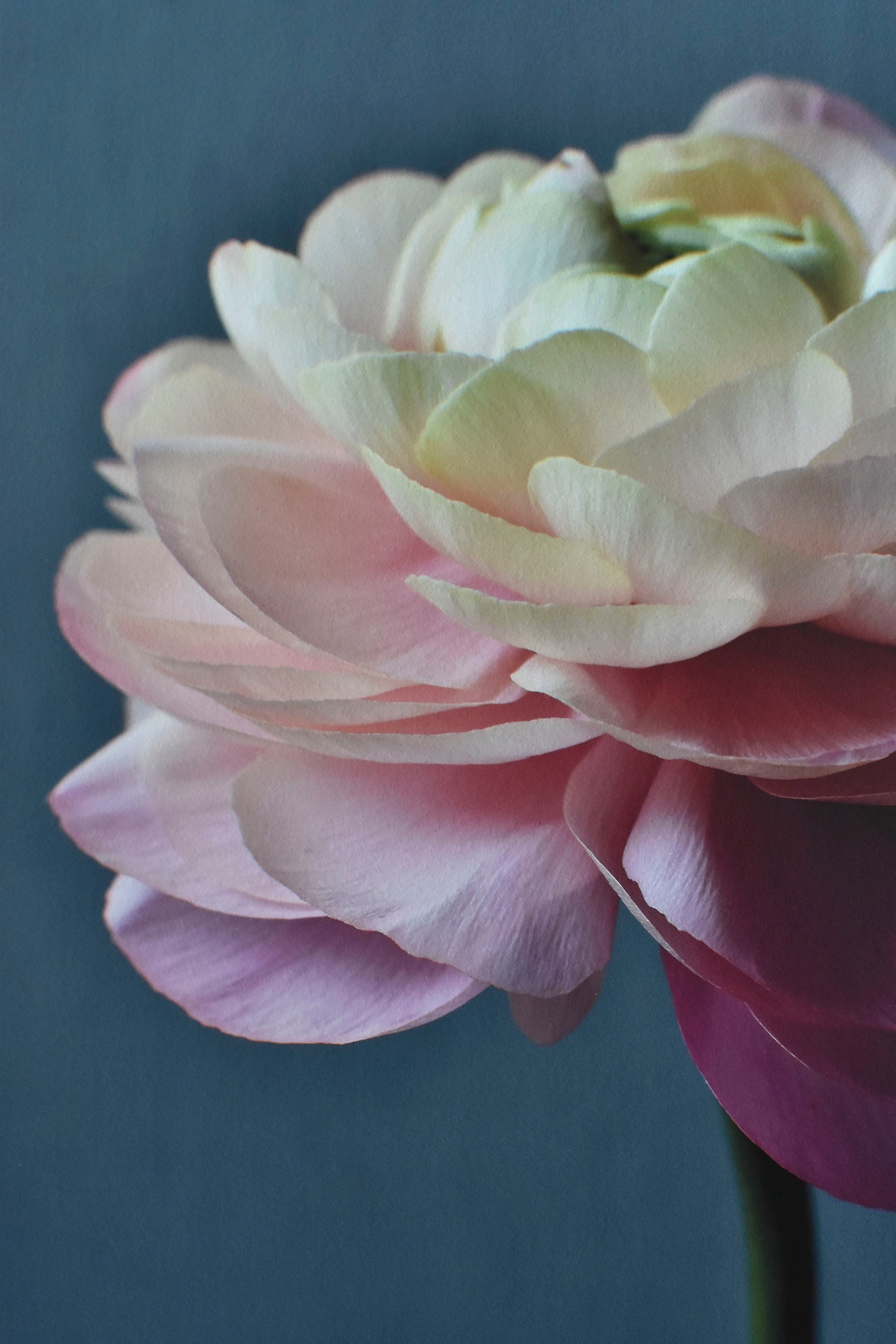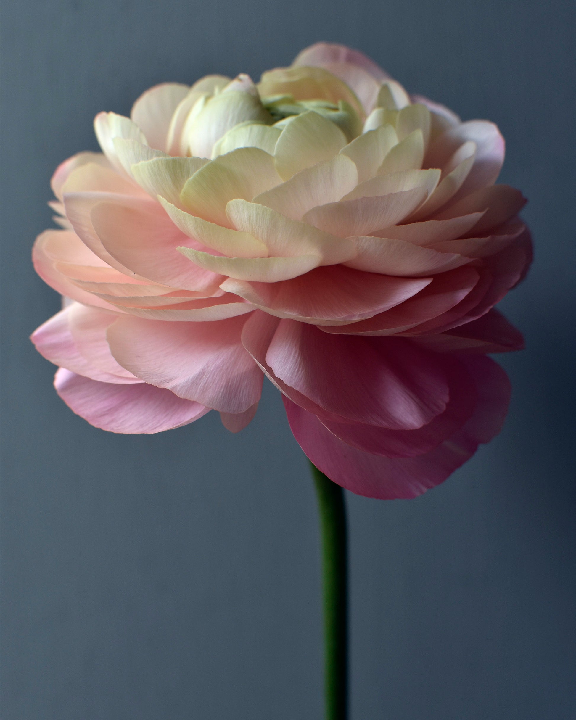 Spring was forever transformed once l learned how to grow ranunculus. In recent years these peony-like, spring flowers have seen a resurgence in popularity thanks to the seasonal flower growing movement. They are hard to resist, and this particular bloom caught my eye, with its many layers of petals creating an ombre effect, from deep pink below through to shades of cream and ivory above.